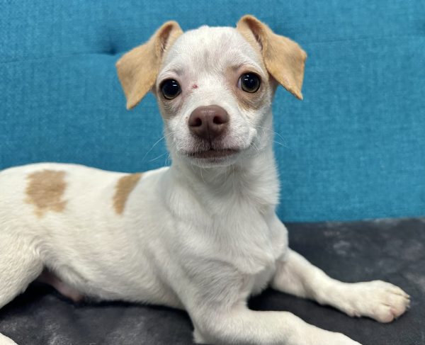 AVAILABLE FRIDAY 1/2. Neo, three months, came to us from a hoarding situation with a LOT of dogs. Our best guess is that Neo is