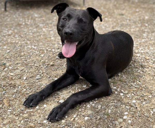 Raja is an incredible, deep, inky-black color. He positively glistens! This sweet boy, about a year and a half old, weighs 50 pounds and appears