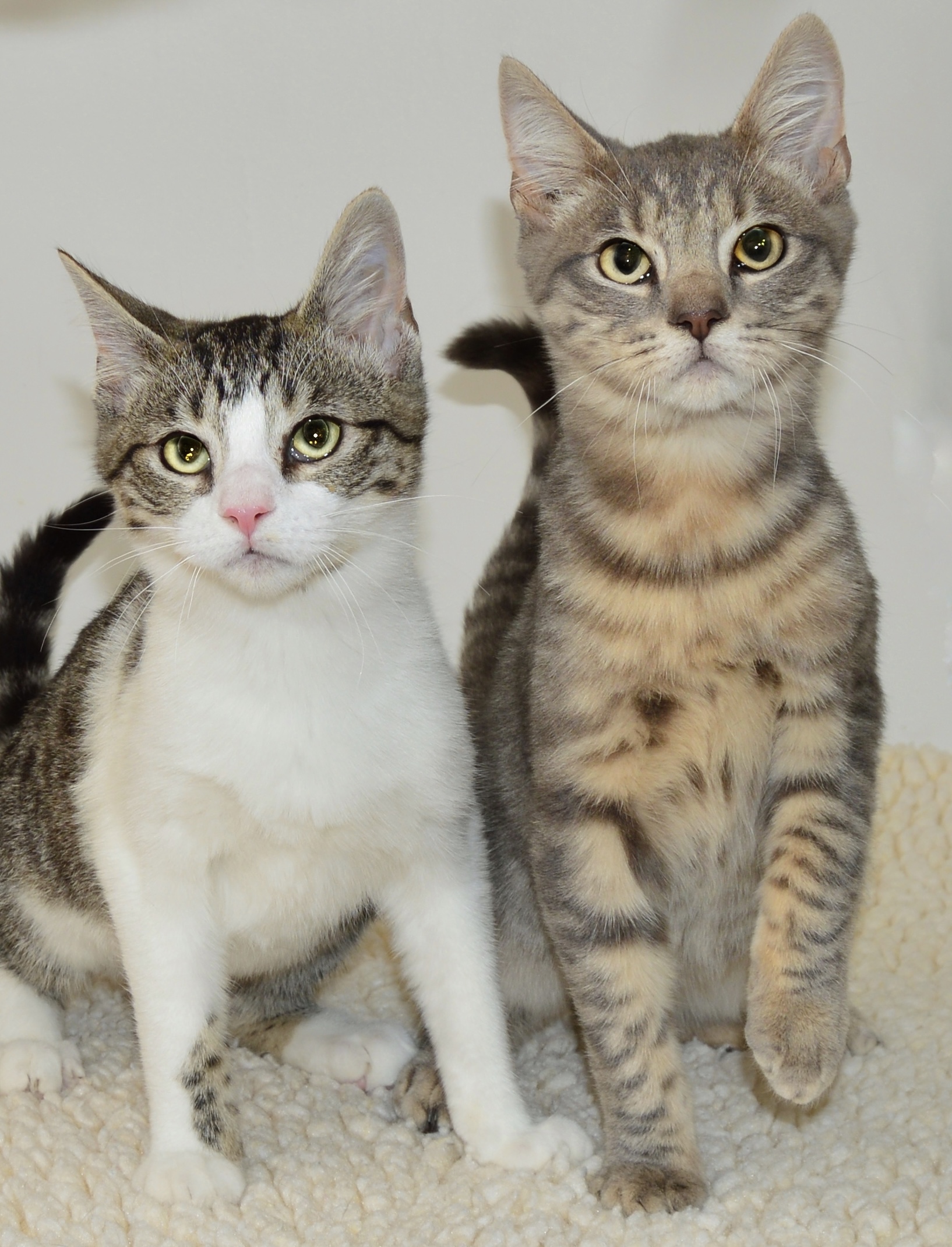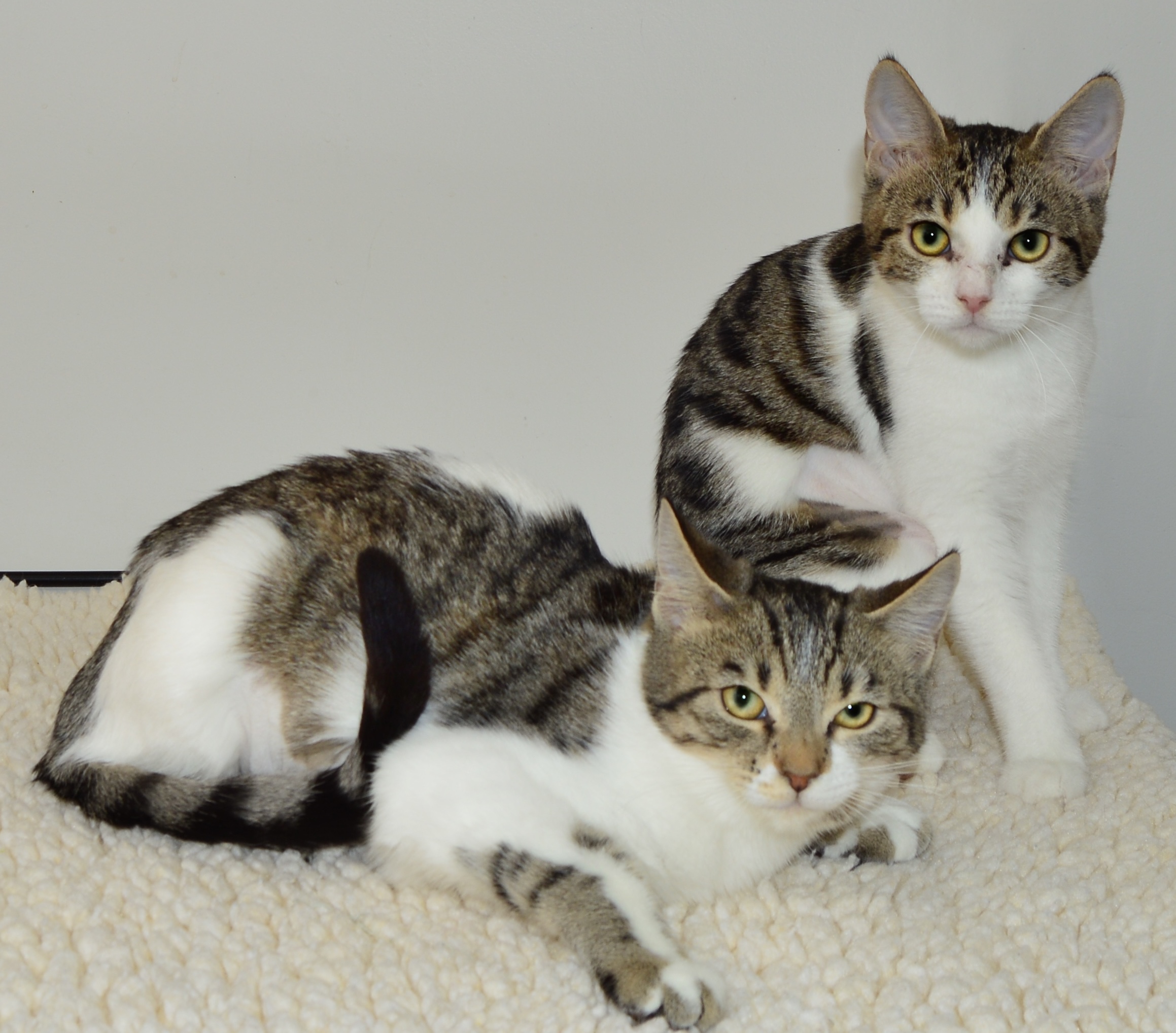 Meet JUNE and MARGARET, a gorgeous pair of sister kitties. These two were orphaned as tiny kittens and lovingly bottle-fed in a foster home, where they