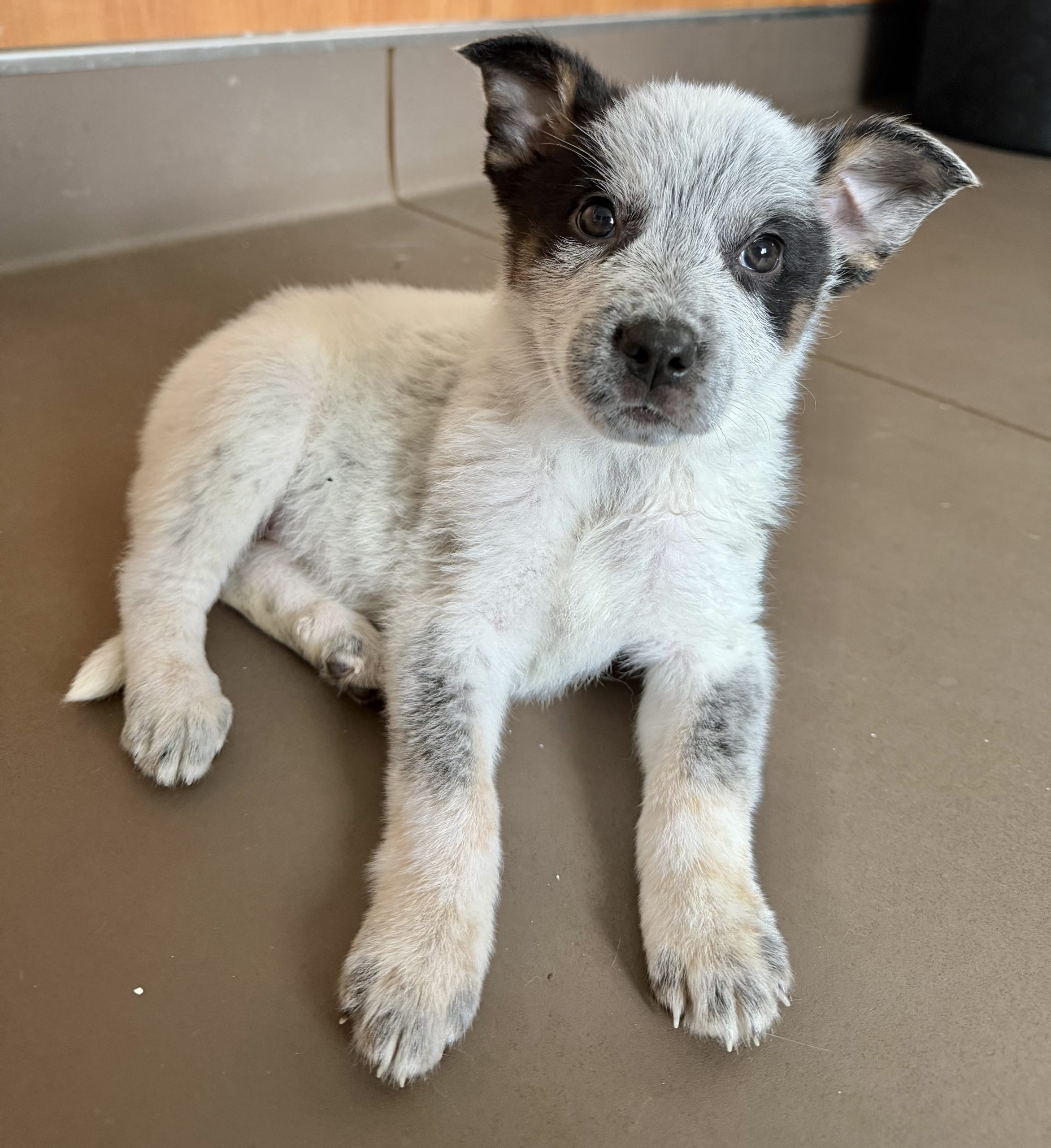 These pups are outgoing and very sweet. We expect they will be medium size as adults, and as they’re clearly a mix of herding breeds, they will likely be energetic and smart.