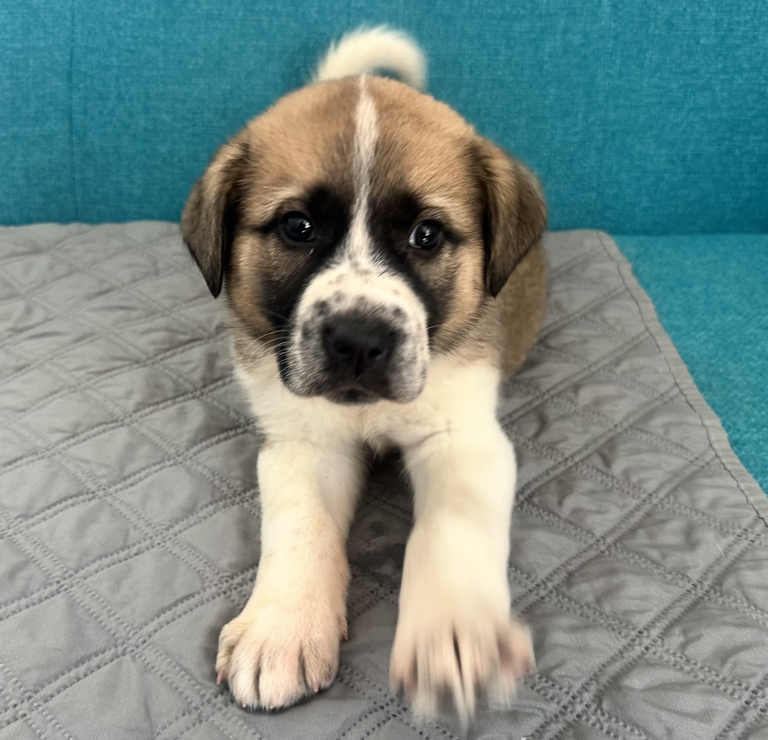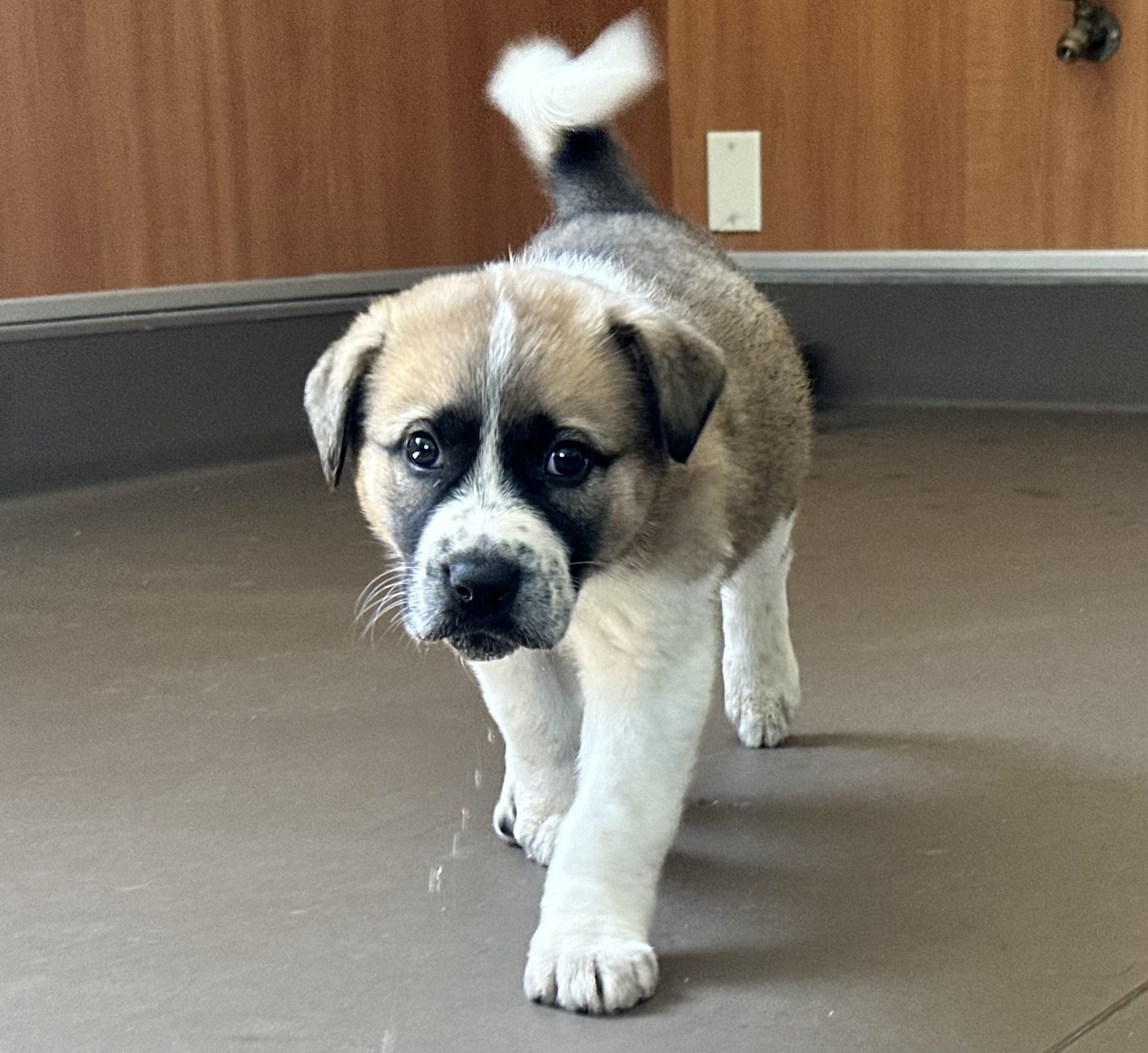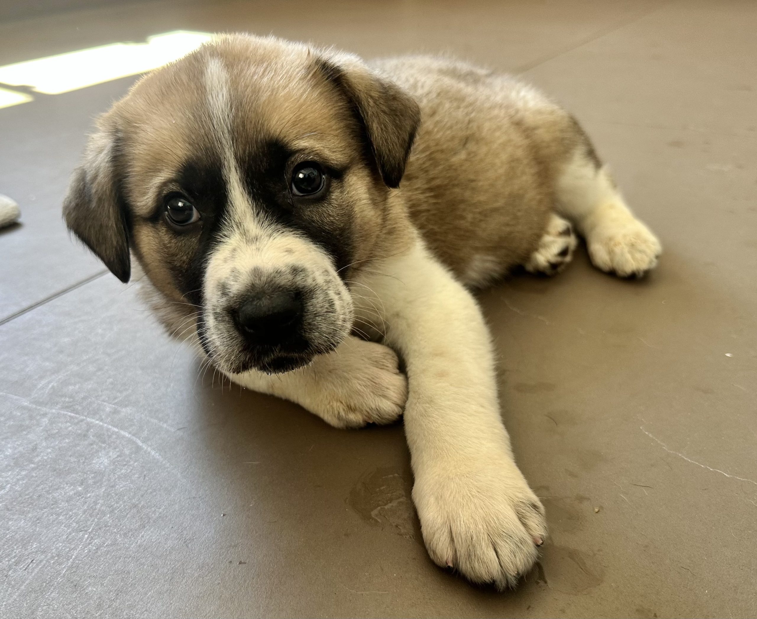 Lilly Bell is likely an Anatolian mix, and will be a large adult, probably around 75-ish pounds.