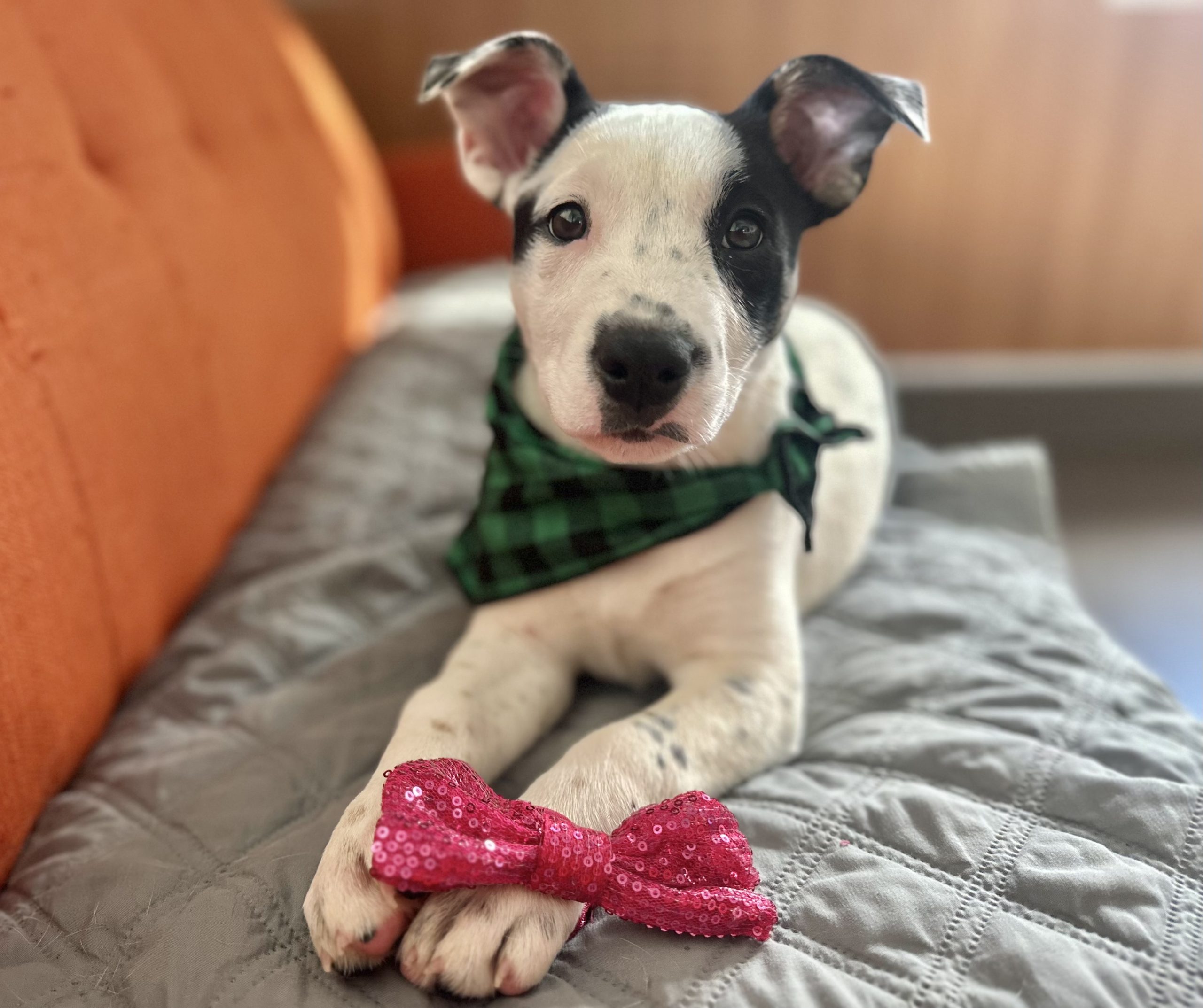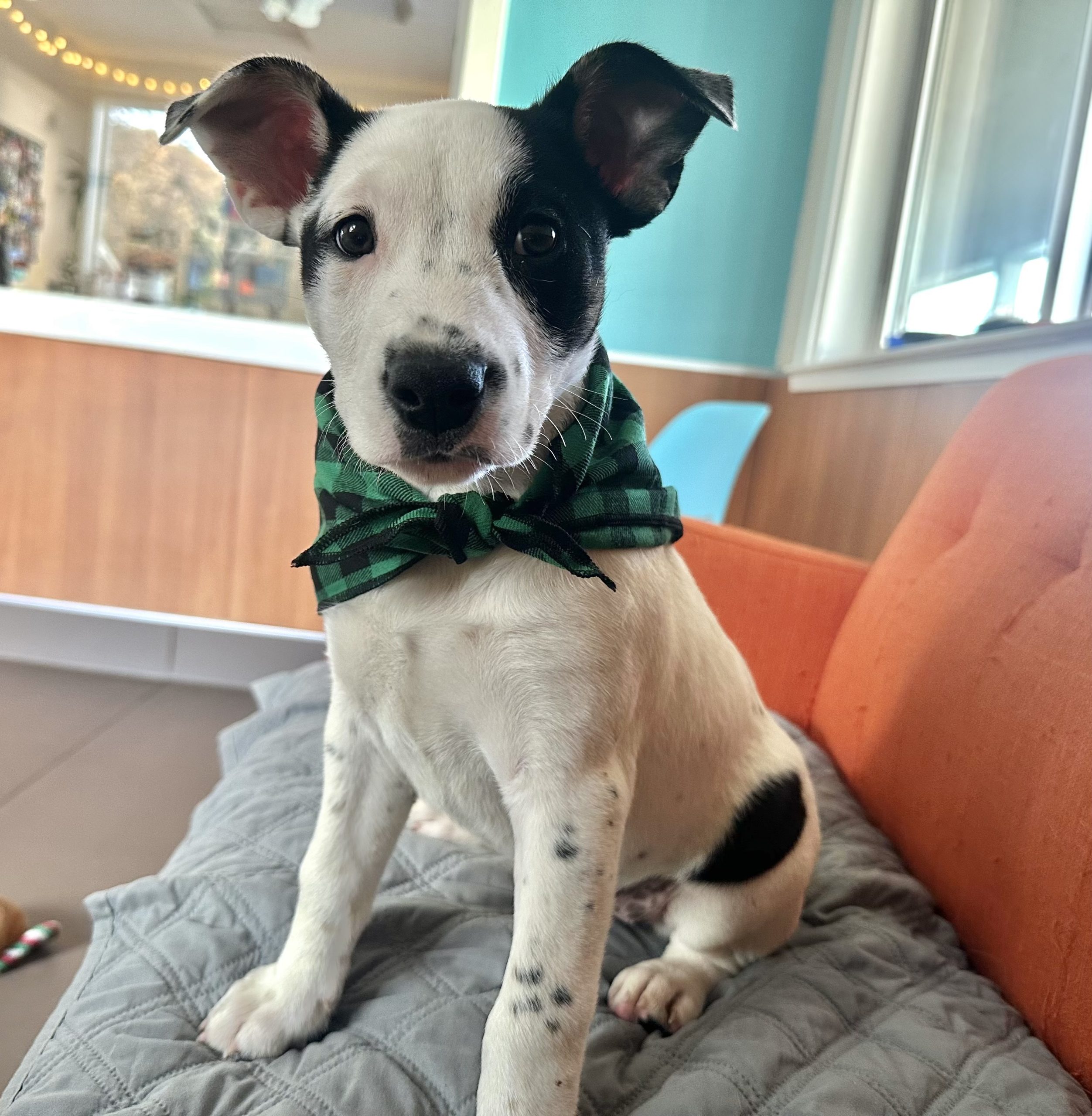 We were told she’s a border collie/mastiff/heeler/pittie mix, but only DNA can tell the full story.