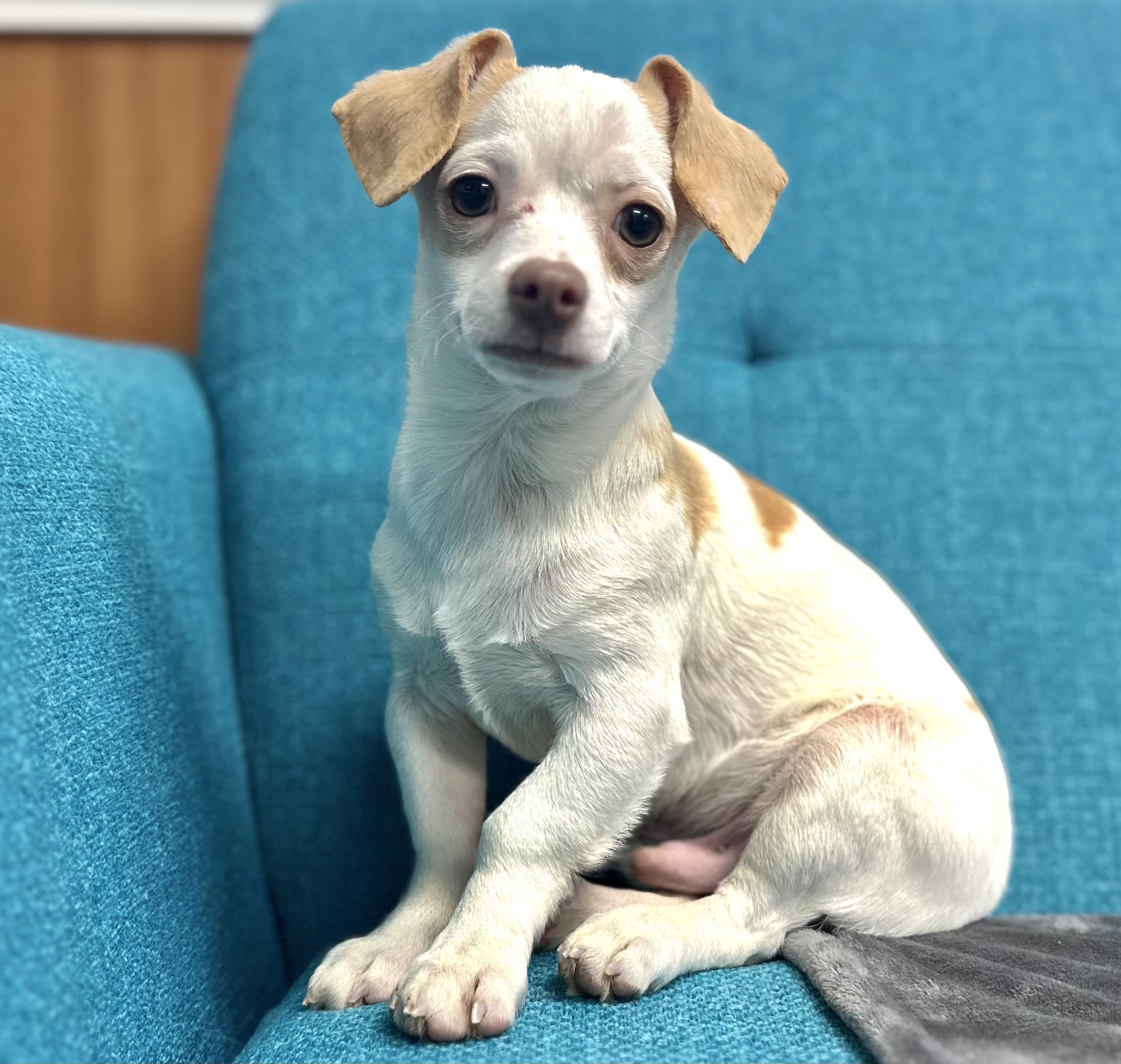 Our best guess is that Neo is a chihuahua/dachshund mix, commonly known as a “chiweenie.” His legs are pretty darn short.