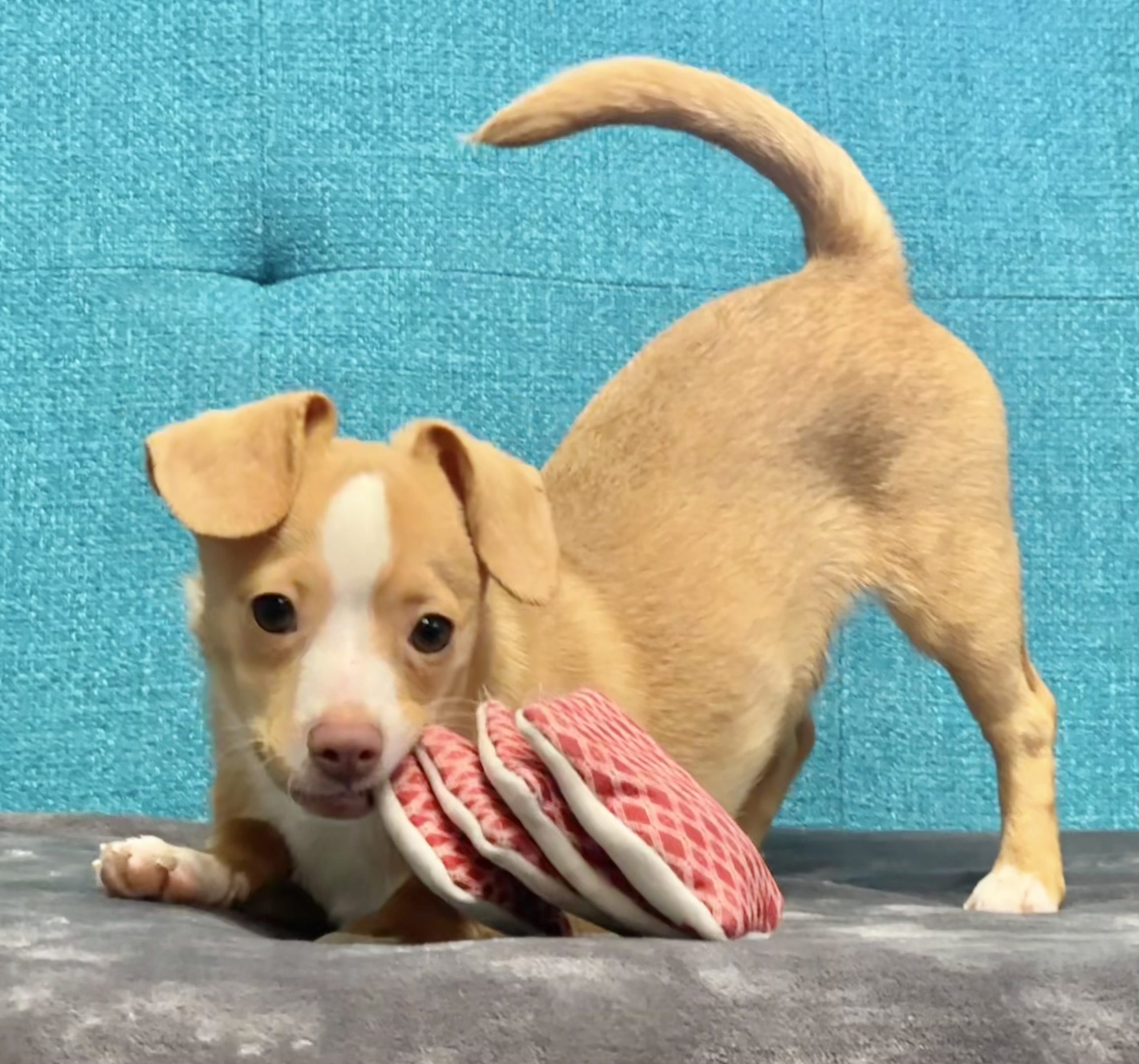 If we had to guess, we’d say Novak is a chihuahua/dachshund mix (commonly known as a “chiweenie “), but we can’t be certain. Those legs are short, yo.