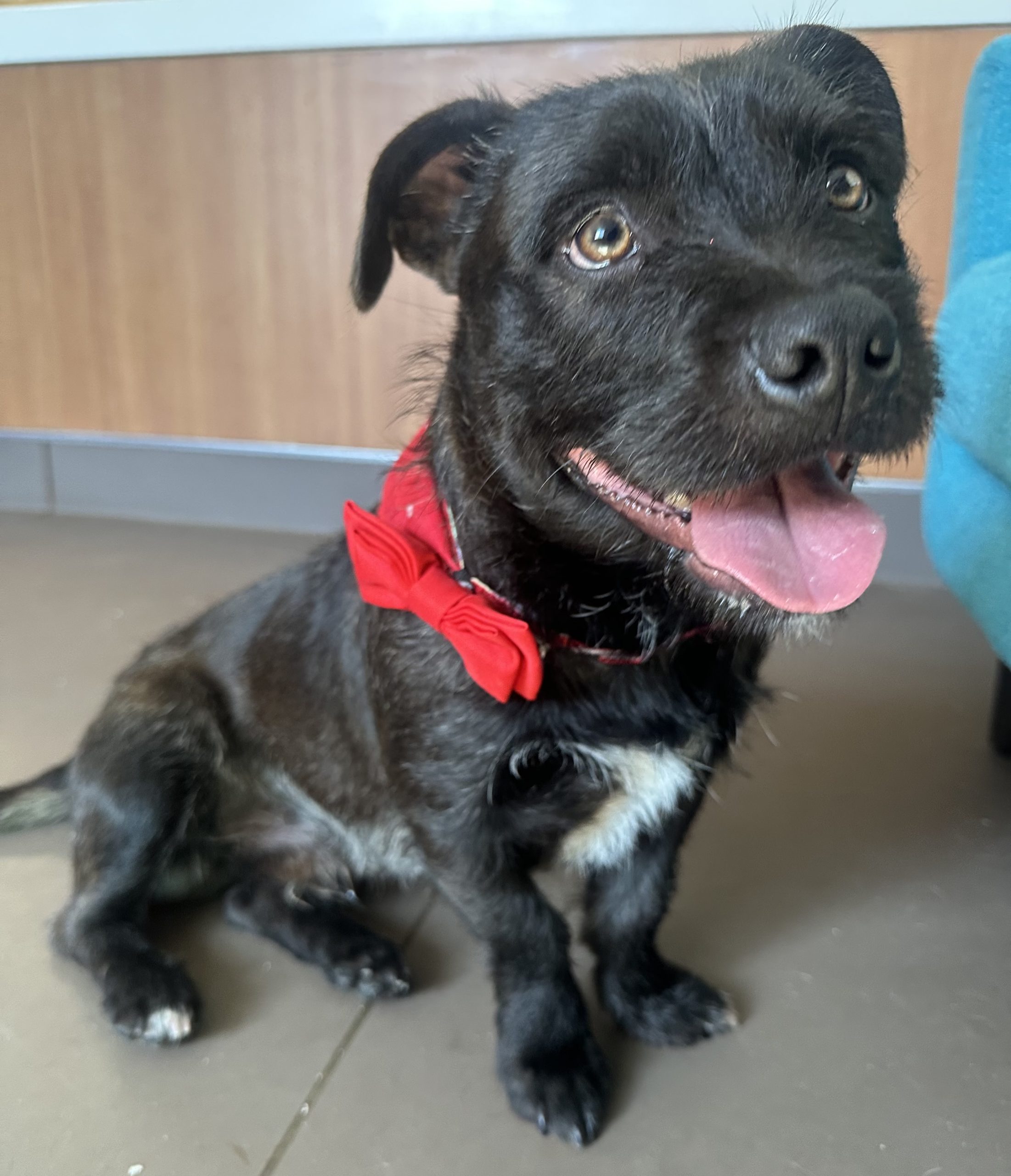 This friendly one-year-old boy is a total lover. He adores people, is getting along beautifully with our other dogs, and hasn’t given our resident shelter cat, Bubba, a second glance.
