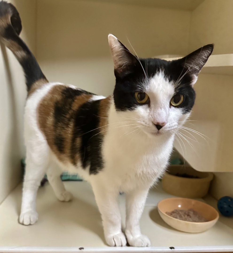 Sugar is a beautiful seven-month-old calico girl with personality plus. She’s getting along well with the other kitties in our cage-free Cat Lounge. Sugar would do a well as your one and only or as part of a group of friendly felines.
