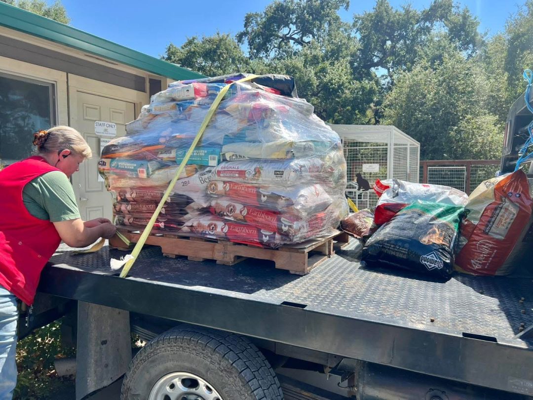 All our gratitude to store manager Lisa Bowman and staffer Wendy of Tractor Supply Co. in Angels Camp for donating a FULL PALLET of dog and cat food! Thanks to their kindness, our Pet Food Bank program will be fully stocked for a while longer. Thank you so much, Lisa and Wendy!
